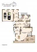 Im Erdgeschoss öffnet sich das Herzstück des Hauses: ein lichtdurchfluteter Wohn- und Essbereich mit Zugang zur sonnigen Südwest-Terrasse – ein Ort für entspannte Familienmomente und geselliges Beisammensein. Die separate Küche mit sich anschließender Speisekammer, ein zusätzliches Zimmer, Gäste-WC, Garderobe sowie praktische Durchgangs- und Abstellflächen sorgen für Alltagstauglichkeit. Ein direkter Zugang führt in die großzügige Doppelgarage mit elektrischem Tor.